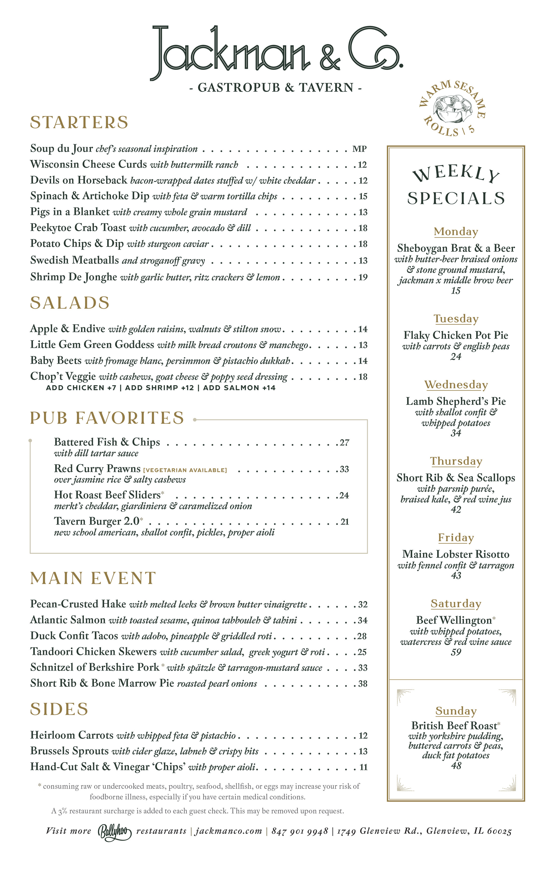 A 3% restaurant surcharge is added to each guest check. This may be removed upon request.